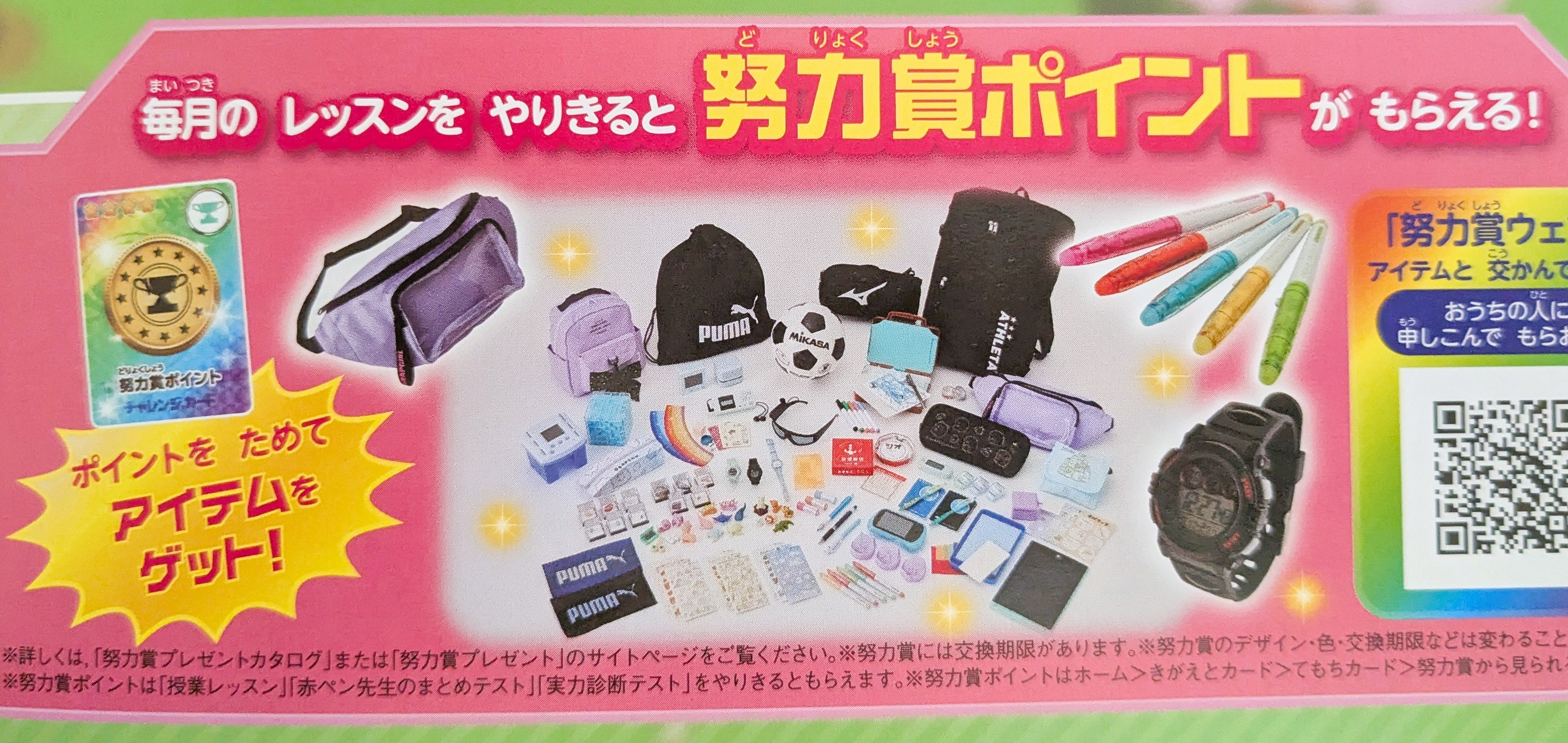 毎月のレッスンをやりきると努力賞ポイントがもらえます。