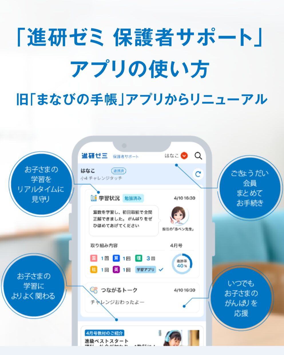 まずは「進研ゼミ 保護者サポート」アプリをダウンロードし、登録情報の確認を行います。