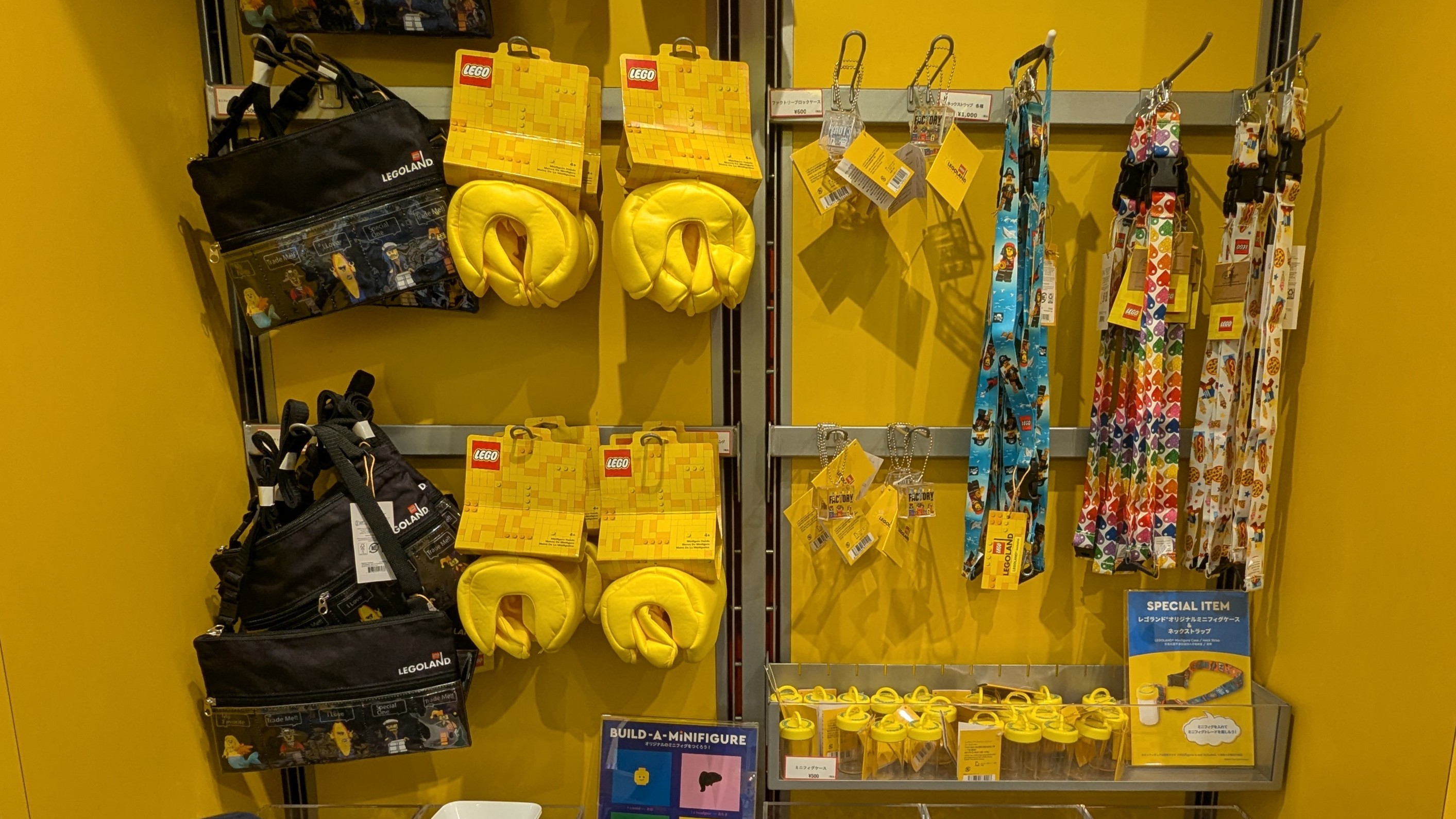 ミニフィグを持ち歩くためのショルダーやケースは、パーク内のショップでも購入できます。