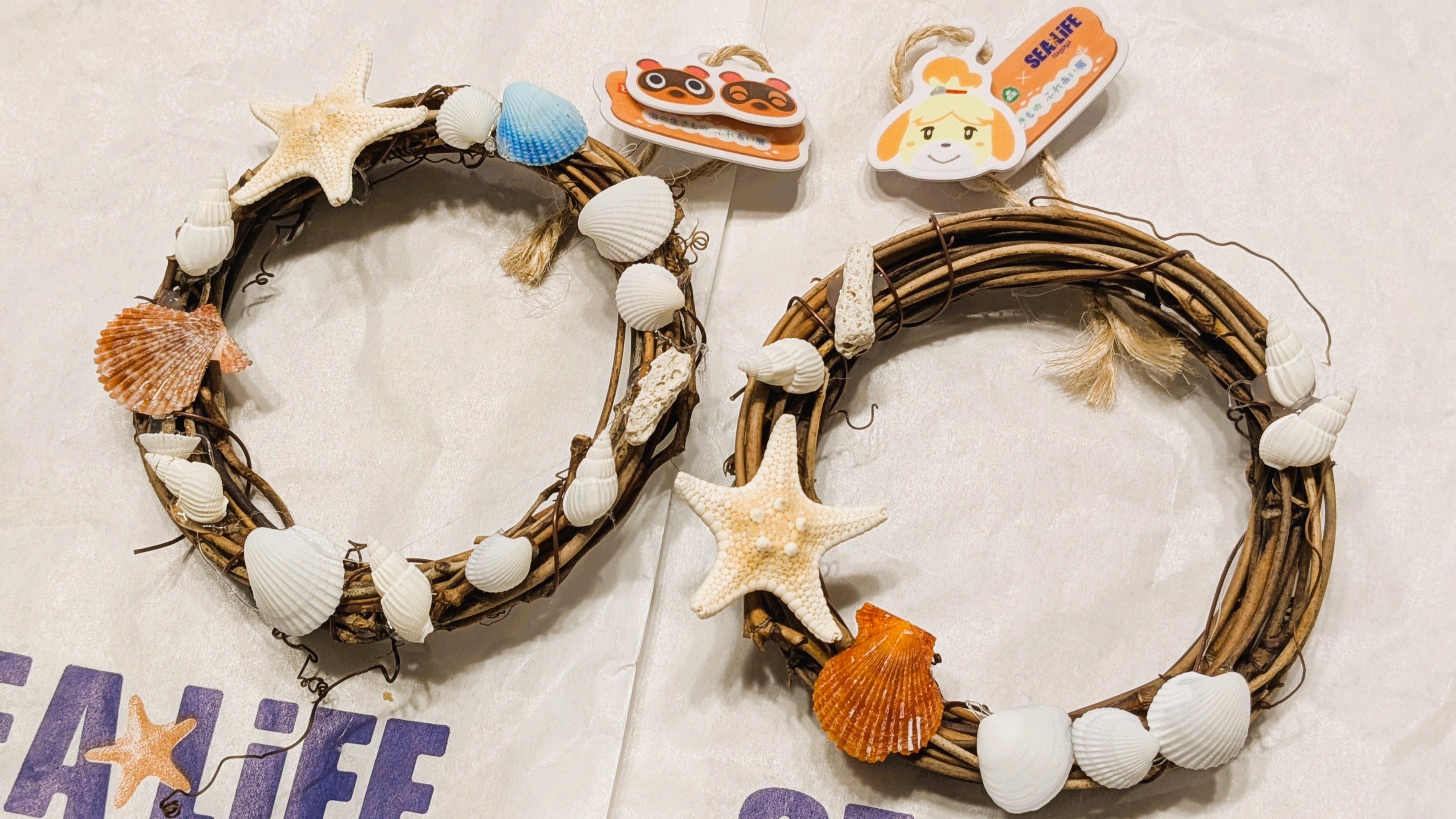 かいがらを使って自分だけのオリジナルリースを作れるワークショップ。